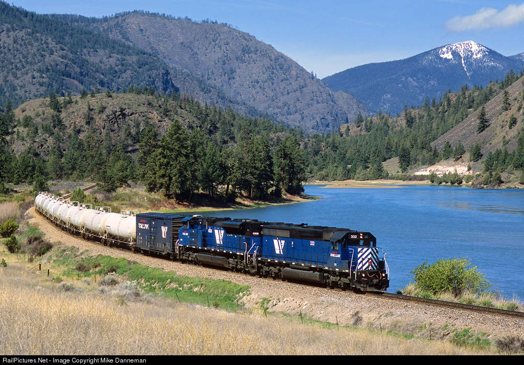 On the pretty spring day of May 10, 2010, Montana Rail Link’s day gas local is eastbound west of Perma, Montana, along the Flathead River. Leading the train is MRL EMD SD45-2 No. 332, a former Erie Lackawanna SDP45 rebuilt with a SD45-2 long hood.