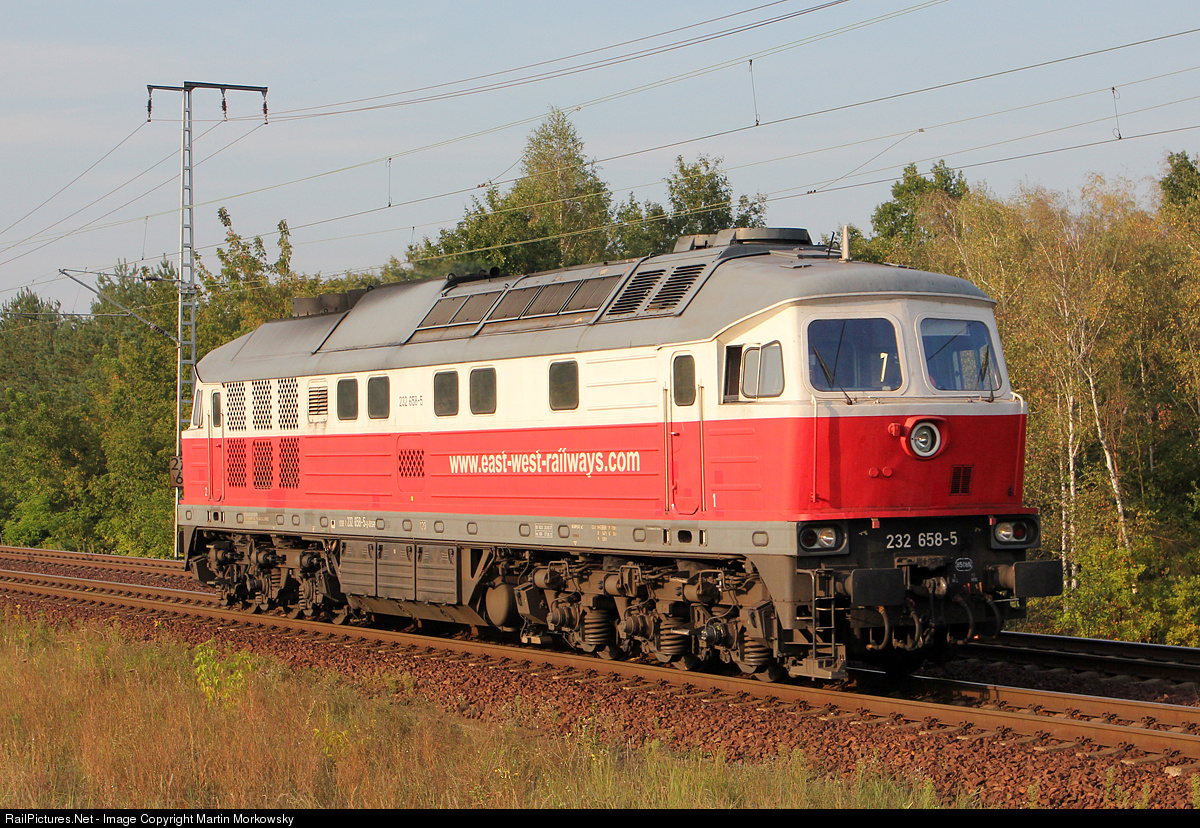 232 658-5 of Eastwestern Railways passing the Wuhlheide in nice evening light