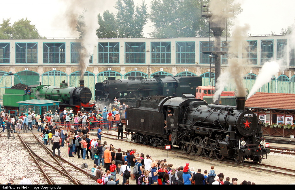 The last operational locomotive (Baldwin 70497) from more than five hundred USATC S160 Class locos (2-8-0), which were bought by MÁV after the World War II. (In the background 109,109 and 424,247 engines at the 14th Steam Locomotive Grand Prix.)