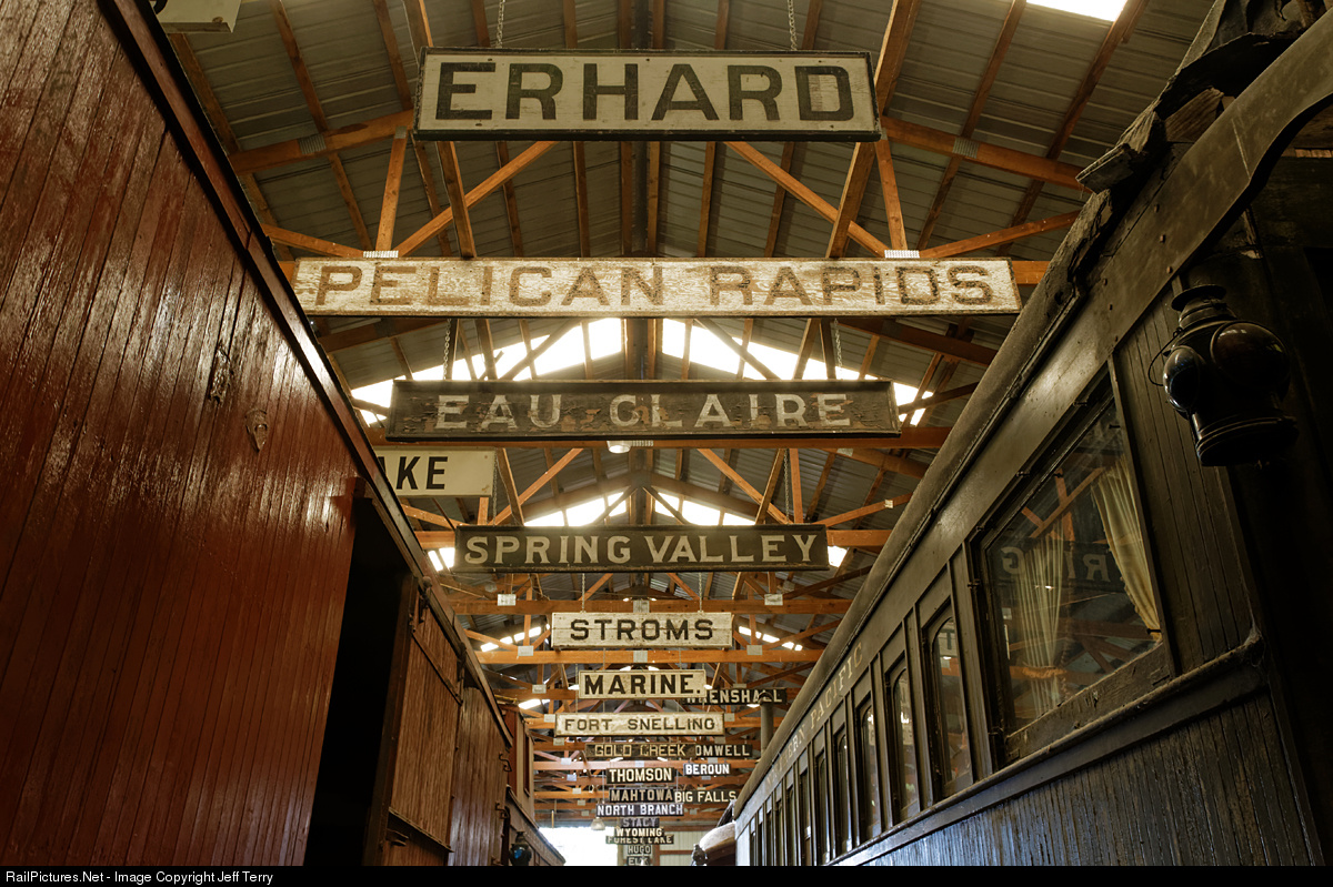A walk through the Ironhorse Central Railroad Museum's engine shed is like walking back 100 years into Minnesota and Wisconsin history. Station signs from all across the upper Midwest hang from the rafters.