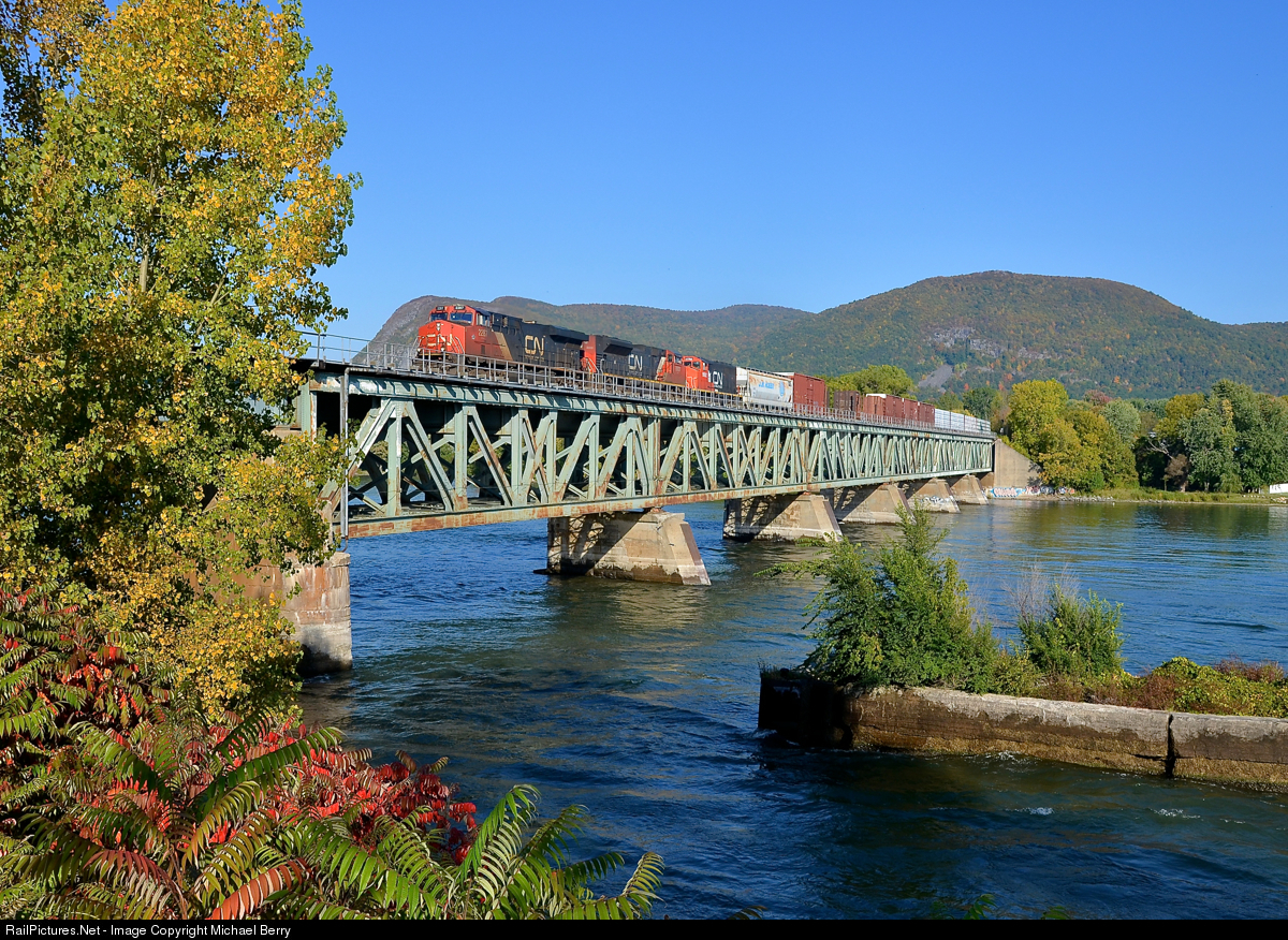 CN 401 is crossing the the Richelieu River on the Beloeil bridge on an exceptionally warm fall day. Power is CN 2287, CN 8003 & CN 9592.
