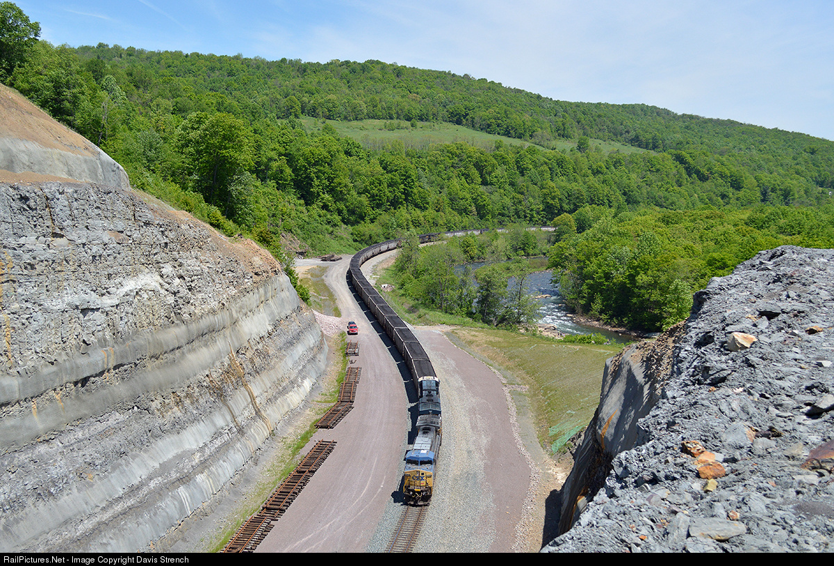 Here we see a loaded N525 coal drag descending towards Cumberland in Pinkerton, PA. As part of CSX's National Gateway effort, the single track (low-clearance) Pinkerton Tunnel was daylighted. It is still a mystery to many as to why they have still not yet filled in the gap in double track gap that occurs through this stretch.