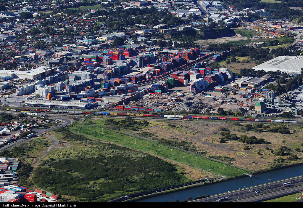 MZ1428and MZ1431 passing through Tempe yard heading for Port Botany.