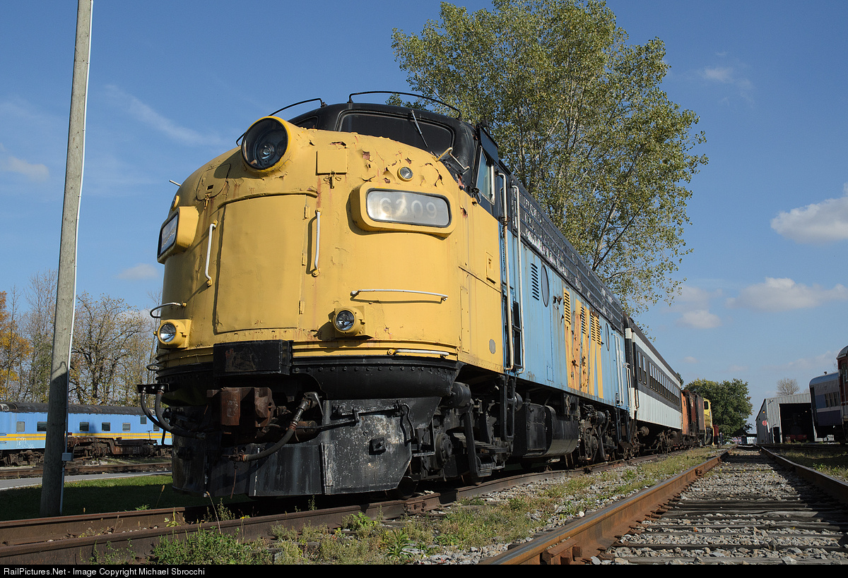 | This preserved locomotive was donated by VIA Rail Canada and was an early era for passenger operations across Canada and the United States. Now showing it's age, it is seen here at Canada's largest railway museum. |