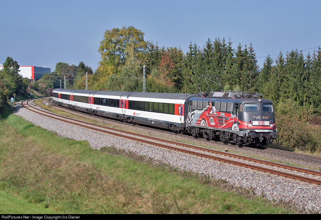 115 509, painted 2011 for "80 years of DB AutoZug", with inter city 187.