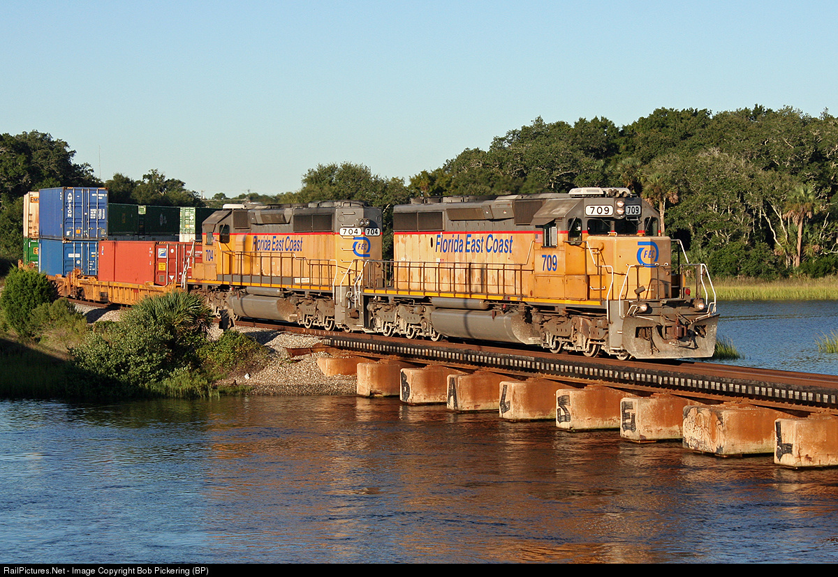 RailPictures.Net Photo: FEC 709 Florida East Coast Railroad (FEC) EMD SD40-2 at St. Augustine, Florida by Bob Pickering (BP)