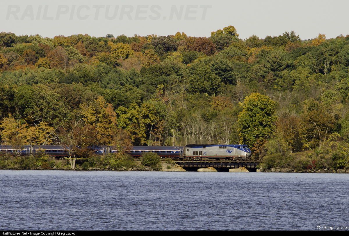 | Amtrak 256 racing east along the Hudson River on its way to New York Penn Station.