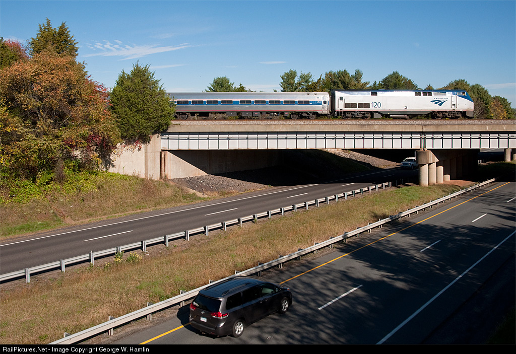 RailPictures.Net Photo: AMTK 120 Amtrak GE P42DC at North of Culpeper, Virginia by George W. Hamlin