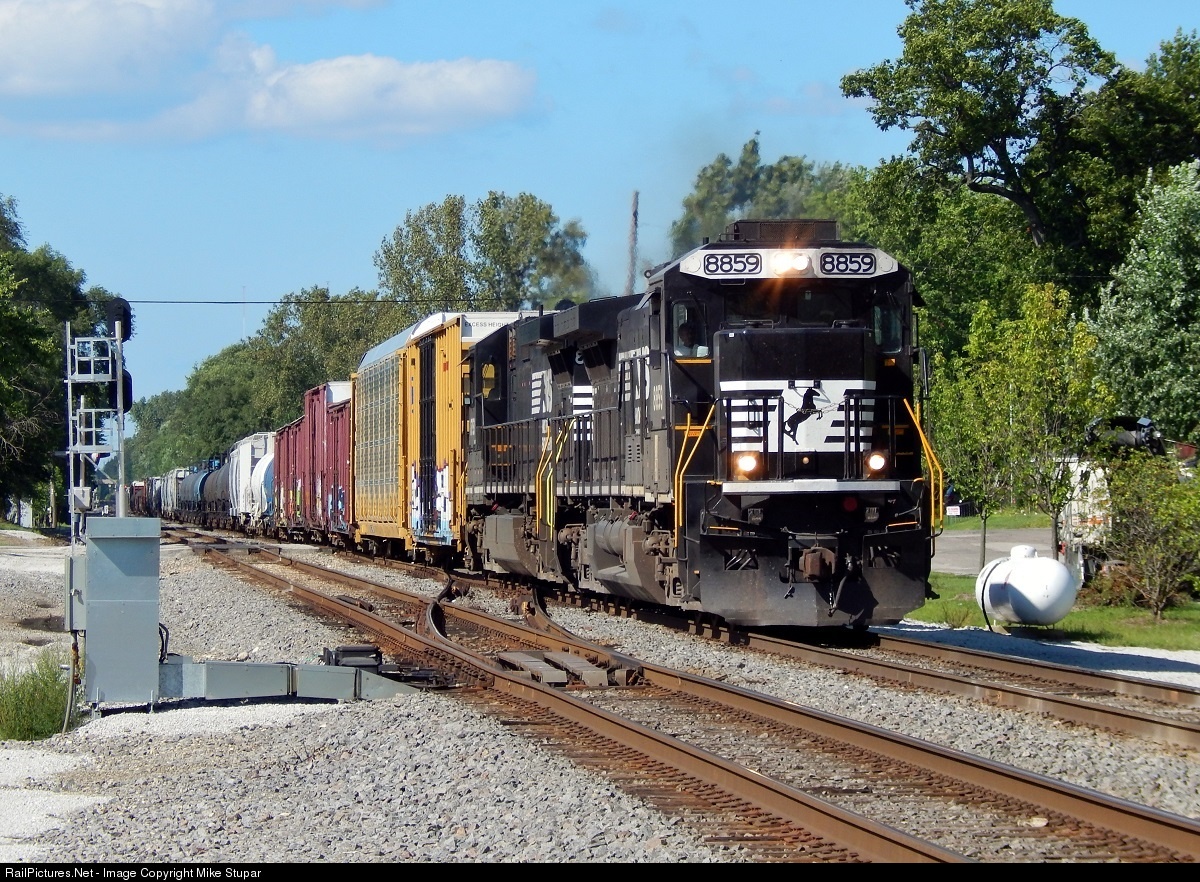 NS 8859 leads a manifest along the "J" and through Griffith, IN.