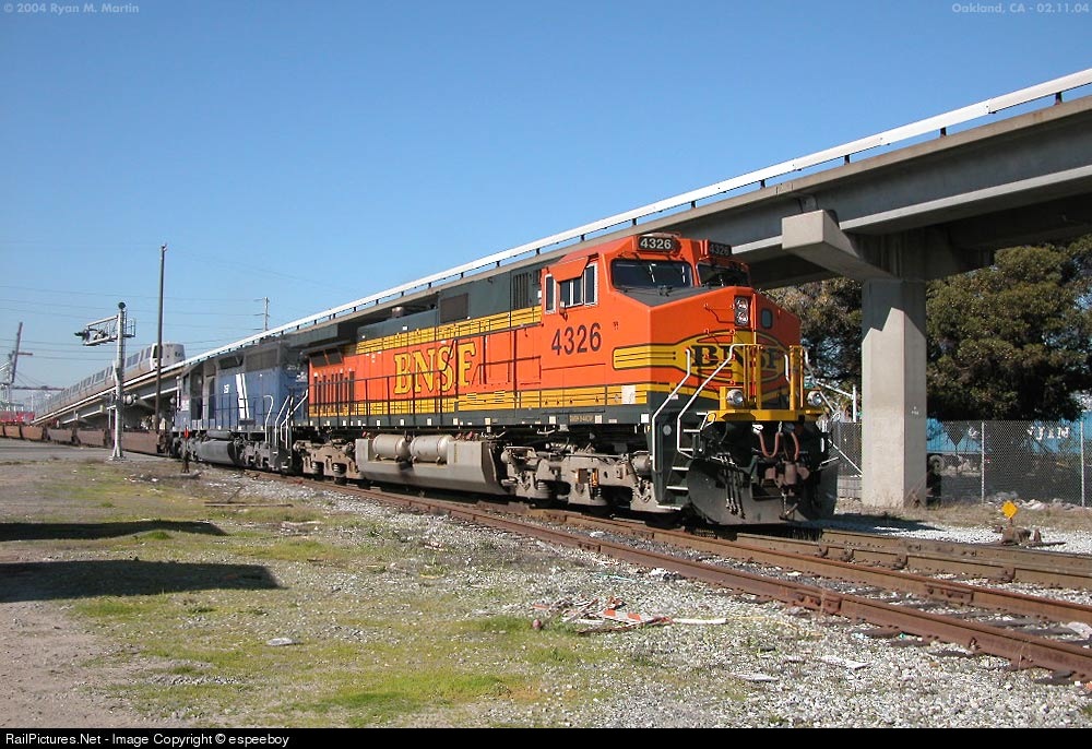 | A monotonous BNSF C44-9W and a slightly rare Montana RailLink SD40 have just arrived as light power from Richmond. They are seen putting together their outbound empty intermodal "baretable" train. |