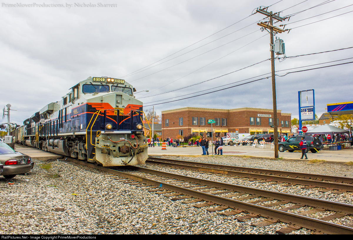 Norfolk Southern's "Central of Georgia" heritage unit leads a Below's Creek, NC bound 746 past the 108th annual Circleville Pumpkin Show. The four day festival is touted as the "Largest Free Show on Earth" and transforms Circleville's population of 15,000 to over 100,000 throughout the event. Visitors come from not just surrounding communities, but from surrounding states and on this particular day, trackside onlookers gazed at a special locomotive.