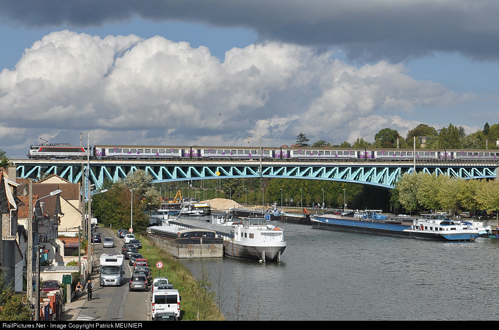 This train Le Havre Paris is diverted by the right bank of the river Seine, and passing over the river Oise.