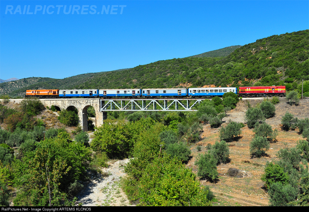 RailPictures.Net Photo: A.9101 & A.9105 OSE Hellenic Railways ALCO, DL537 at Andritsa bridge, Greece by ARTEMIS KLONOS