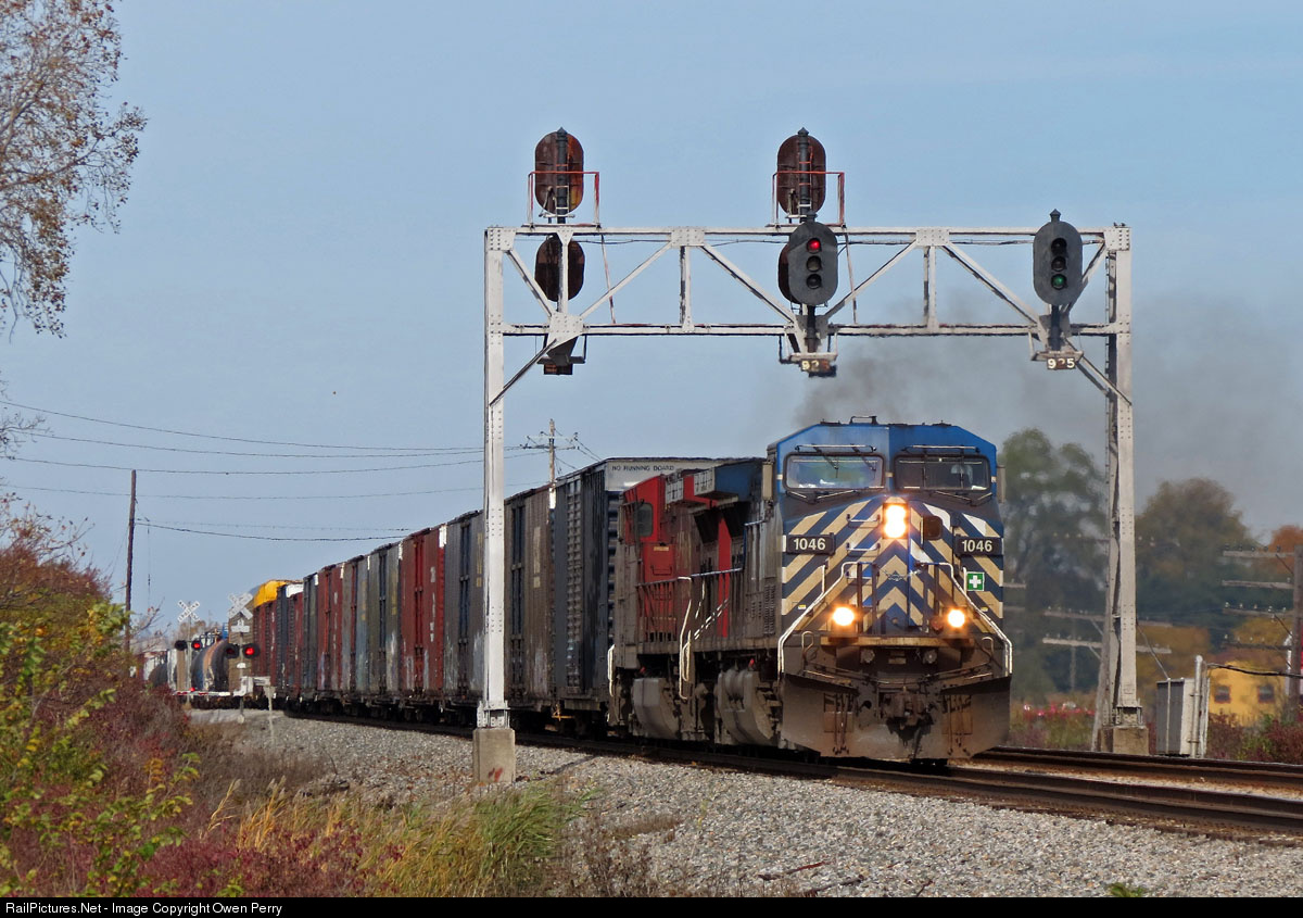 Q233 eases under the C&O signals at Longley just north of Fostoria where they will wait for traffic to clear up.