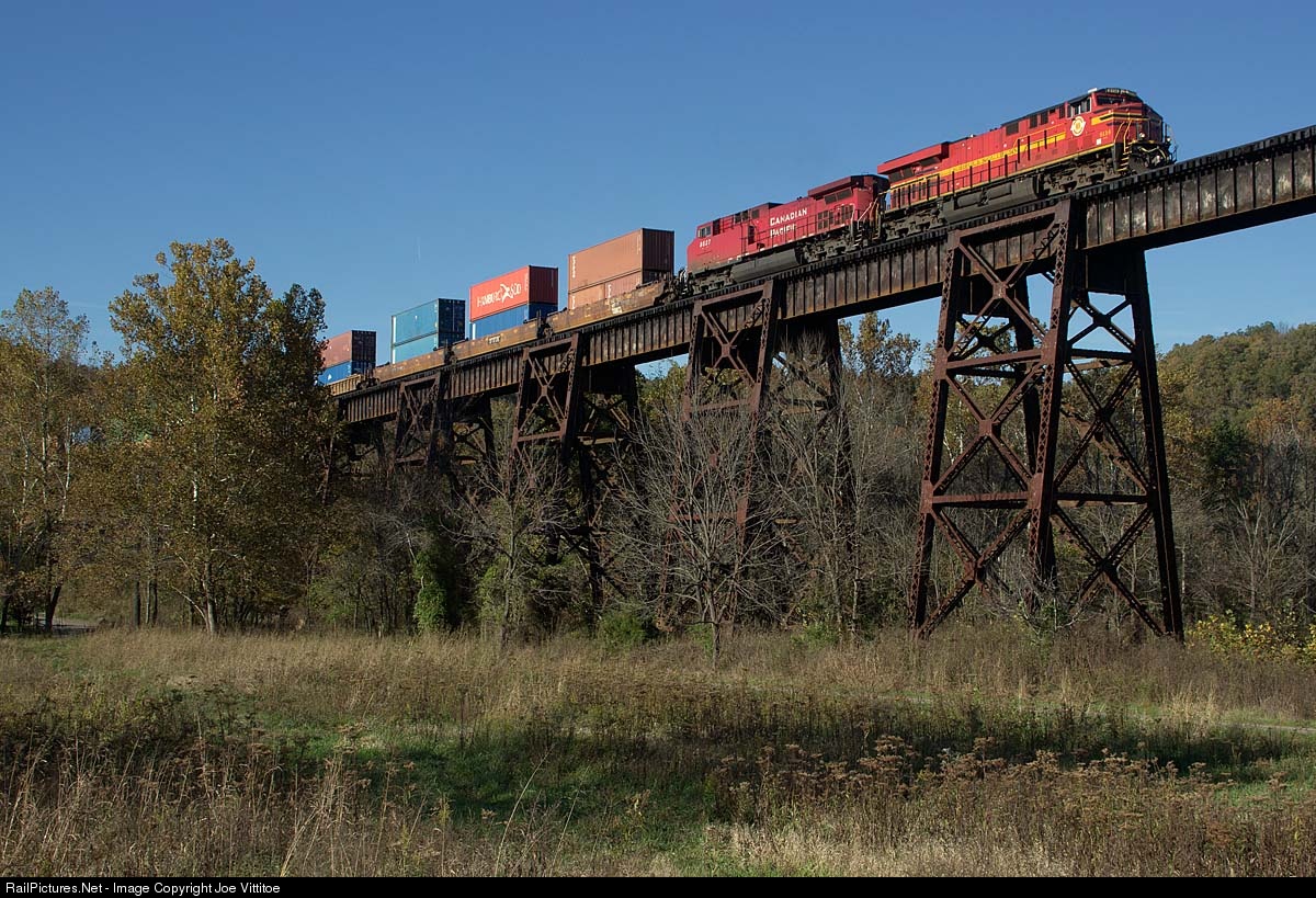 The original NS heritage unit leads 295 south over the trestle at Southfork.