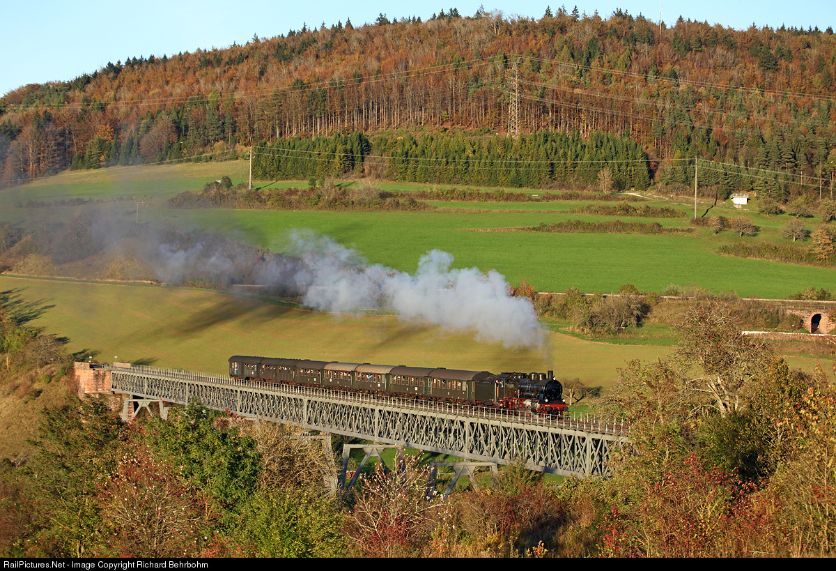 | Probably for the last time (next year an other locomotive will be on the line) P 8 2455 Posen is crossing the „Viaduct Epfenhofen“ (264m / 288 yds) with the last scheduled train this year on the Sauschwänzlebahn. |