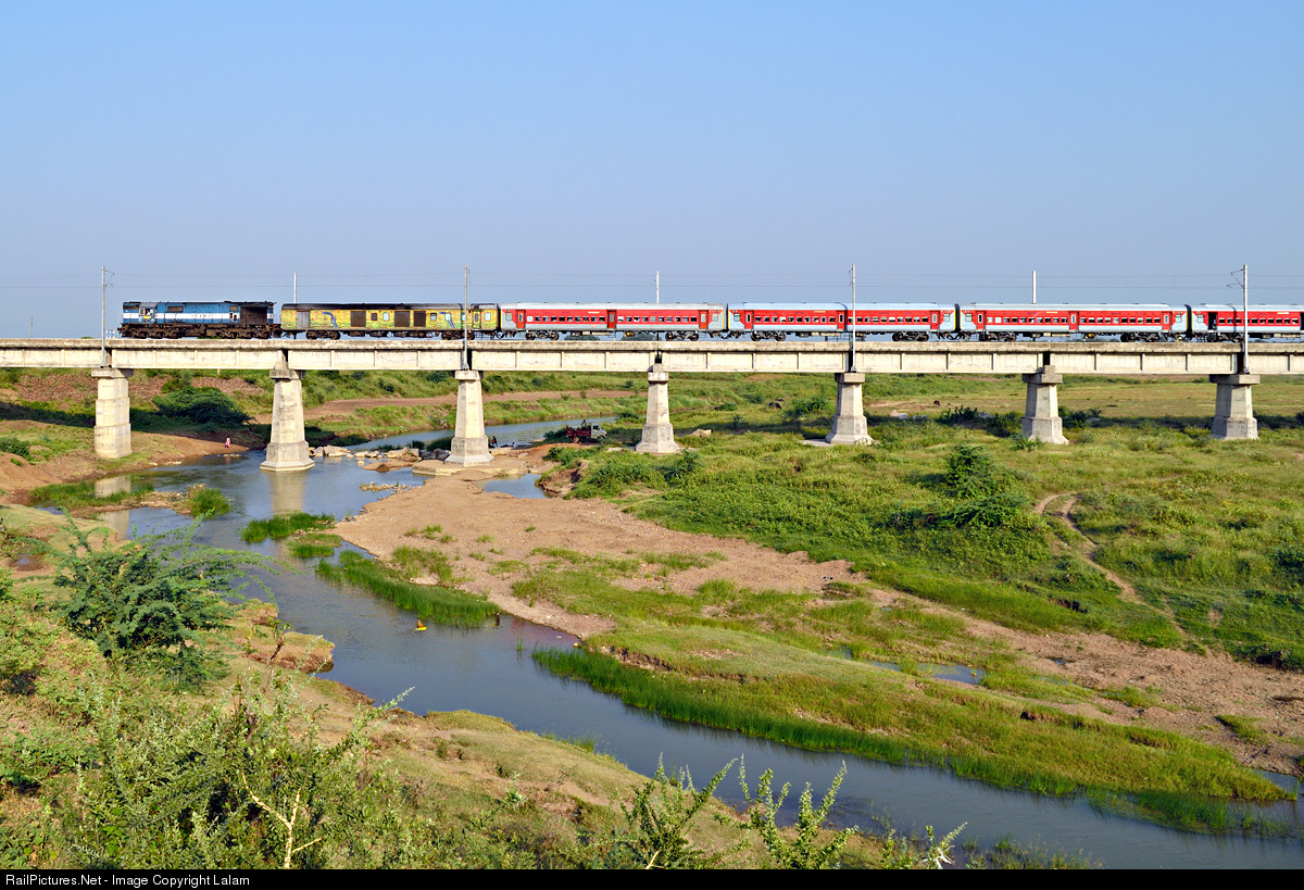 Secunderabad to Jaipur express is one of the first few passenger trains started on newly constructed Navi Amravati to Narkher railway line. It runs with new design passenger coaches that have been developed by Linke-Hofmann-Busch of Germany and produced by Rail Coach Factory in Kapurthala, This line has been constructed to bypass the saturated route between Badnera and Nagpur. Electrification work can be seen in progress on Pedhi river bridge, near Valgaon.