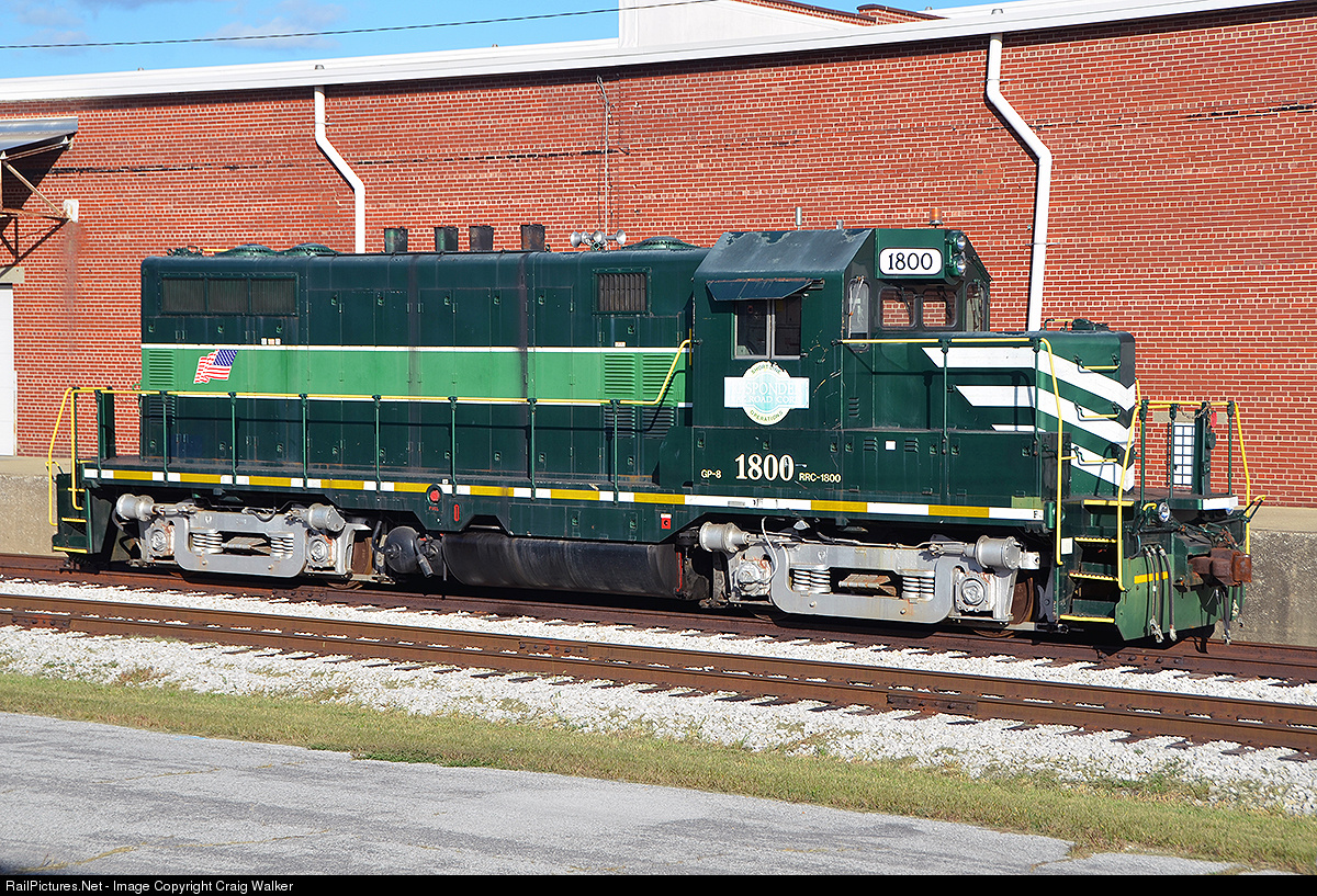 It is always a treat to find a nice-looking GP7 sixty-three years after it was built! Respondek Railroad Corporation GP8 1800 rolled out of EMD's Illnois factory in 1951 as United States Army GP7 1838. The engine, which rides on AAR trucks from an Alco trade-in, was later Alaska Railroad 1801, Badger Lumber (BDLX) 1801, Trans Global Solutions (ECRX) 1801 and Missouri Central (MOC) 1800 before being purchased by Respondek. Photographed on railroad property with permission and full PPE.