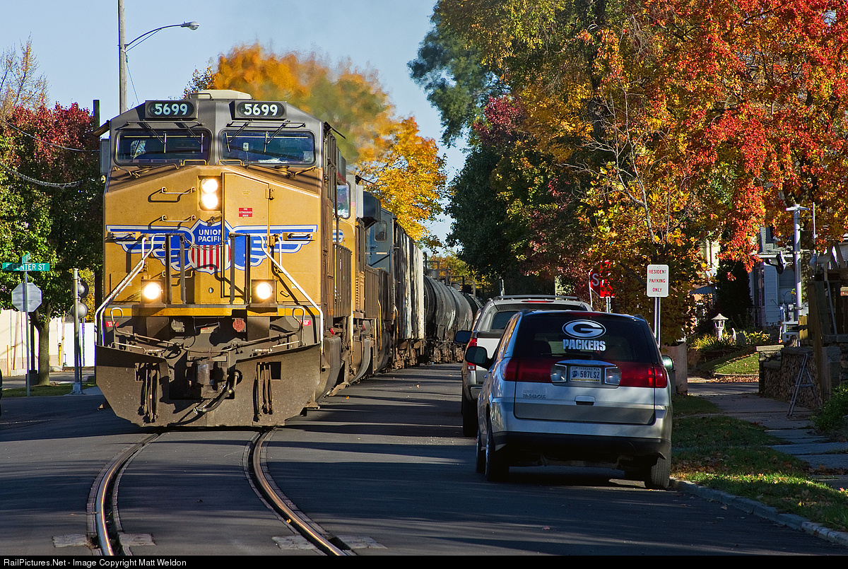 A tanker train NS 68E cruises down Hickory Street on a beautiful fall morning. The UP 5699 is one of UP's 5 pre-production GEVO ES44AC units numbered 5695-5699.
