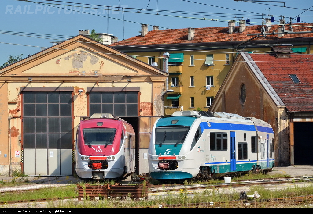 In front of the maintenance workshop you can see two "Minuetto Diesel" on the left belongs to "Trentino Trasporti" the other belongs to "Trenitalia"