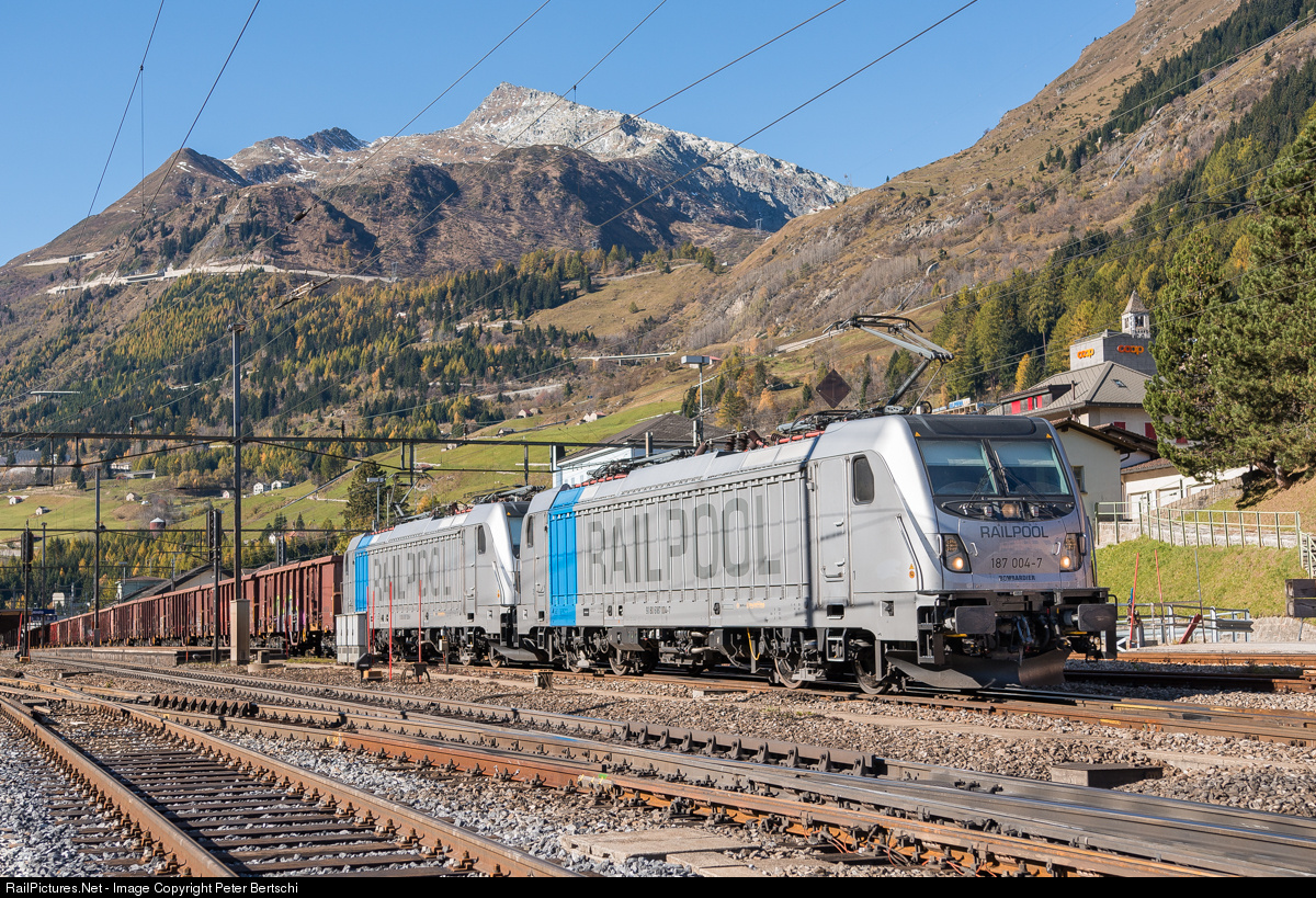 | The new BLS 187 004-7 and 187 008-8 on the track from Emmenbrücke to Lecco, here at Airolo.