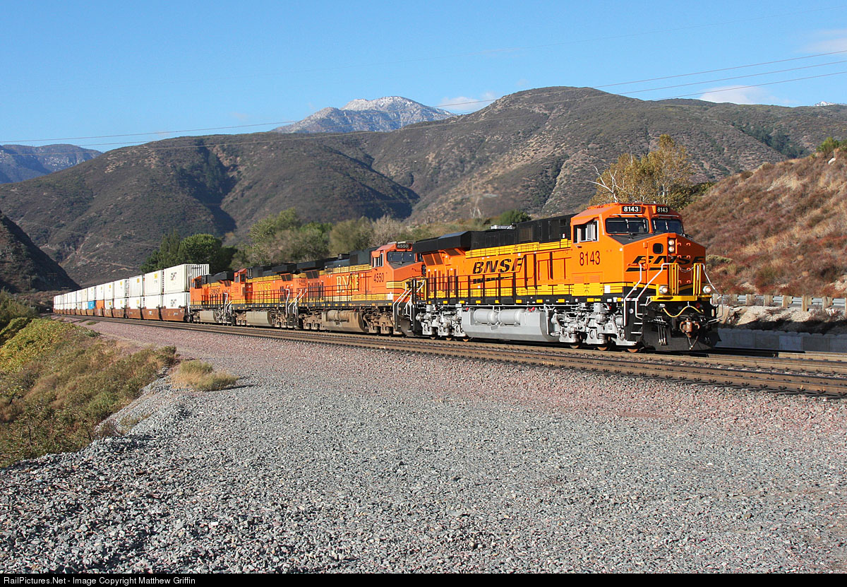 RailPictures.Net Photo: BNSF 8143 BNSF Railway GE ES44C4 at Blue Cut, California by Matthew Griffin