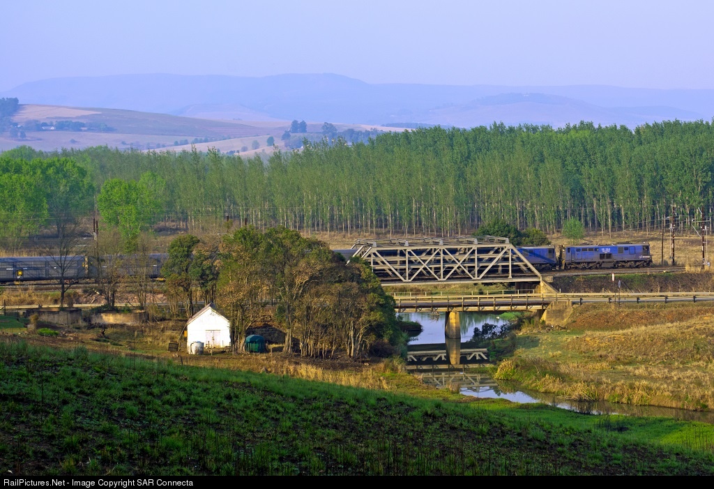 A beautiful golden sunrise arrived right on cue in Lions River in the KwaZulu Natal Midlands! 18-194 is in charge of this car train as it crosses the old steel bridge out of Lions River Station. The train is outward bound from Durban and is en-route to Johannesburg.