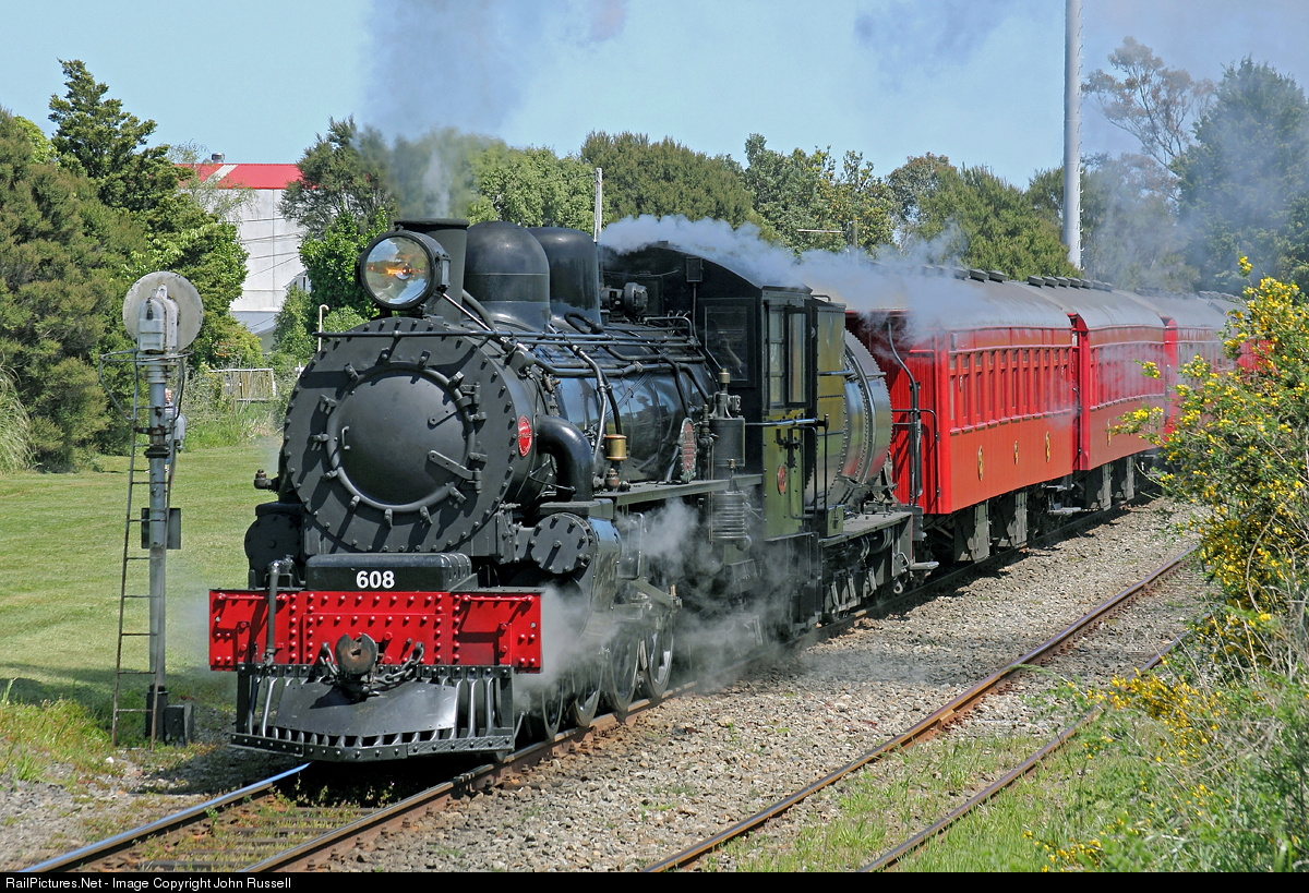 Ab 608 was built by NZR Addington (Christchurch) in 1915 and named "Passchendaele" in 1925 as a War Memorial for over 400 railwaymen who perished in WW1. It is now owned by NZ Railway & Locomotive Society who restored it for the centenary. The public response during the Heartland Tour of North Island was fantastic and the train is seen departing Ashhurst for Napier.
