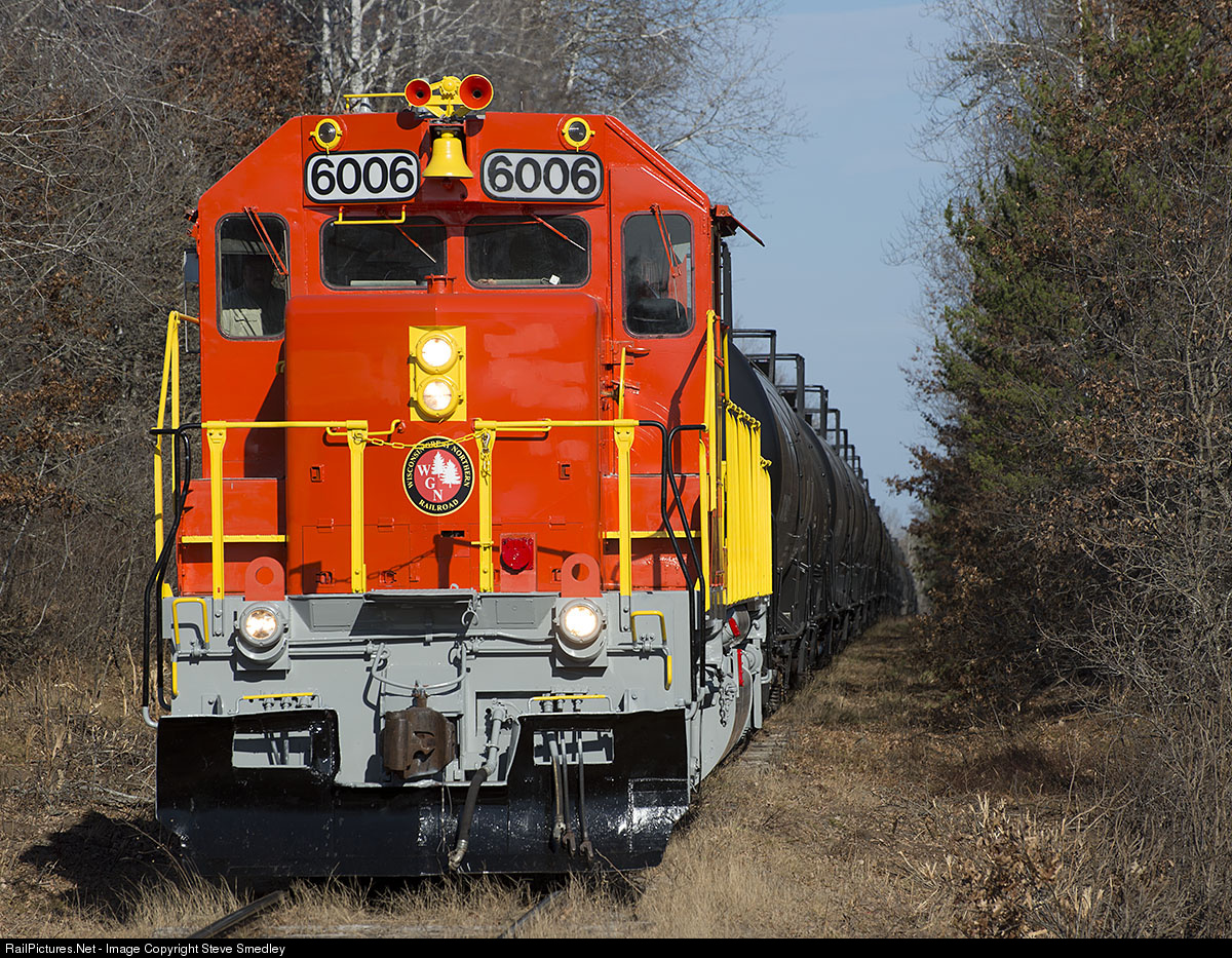| Wisconsin Great Northern Railroad 6006 a, former Algoma Central SD40-2, was repainted in preparation of its first service on the Hayward Branch as part of a switching agreement with CN.