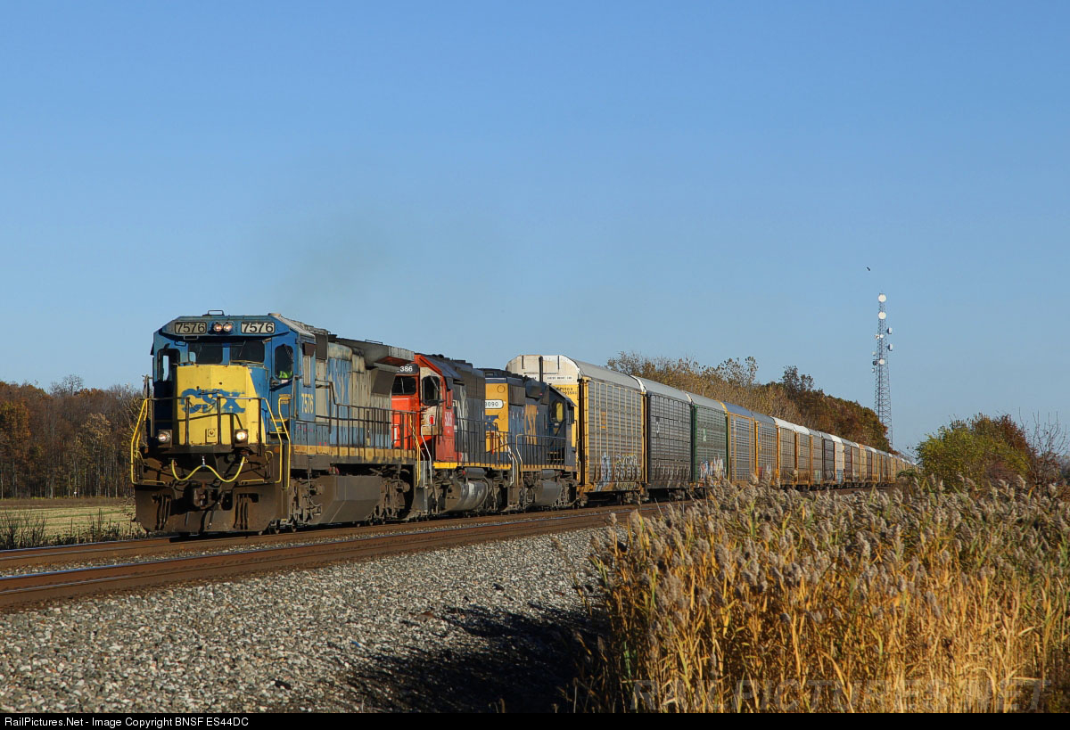 RailPictures.Net Photo: CSXT 7576 CSX Transportation (CSXT) GE C40-8 (Dash 8-40C) at Attica, Ohio by BNSF ES44DC