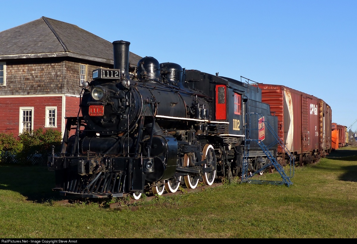 | Former CN Rail 4-6-0 #1112 on display at Smiths Falls. This locomotive was built by Montreal Locomotive Works in 1912 and was operated by the Canadian Northern, Canadian National and Quebec North Shore and Labrador Railways before being retired 1961. |