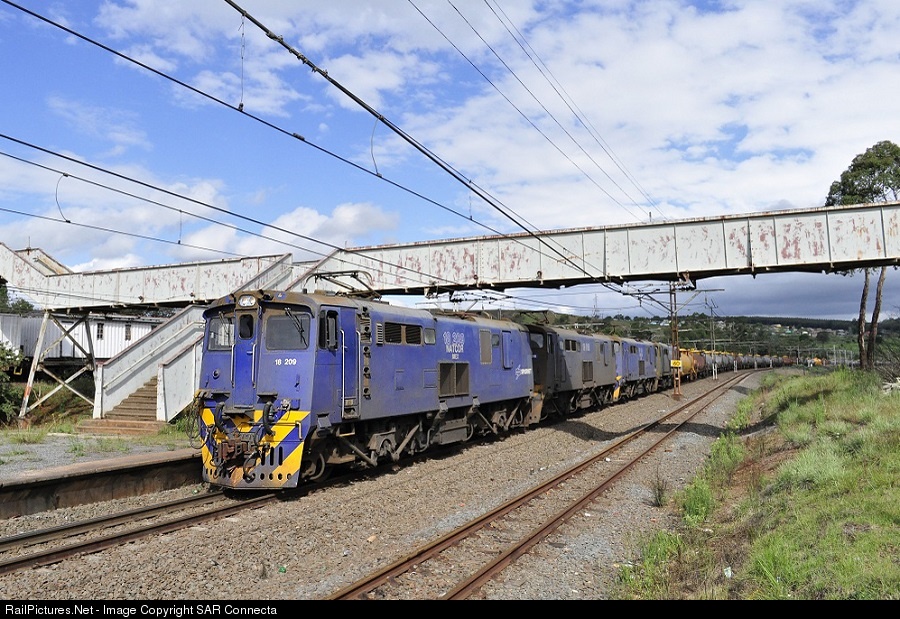 | 18-209 and three helpers are seen here passing through Cedara Station in the KwaZulu Natal Midlands, with a load of Jet Fuel for O.R. Tambo International and Lanseria airports in Johannesburg, having just emerged from the second largest tunnel in South Africa. |