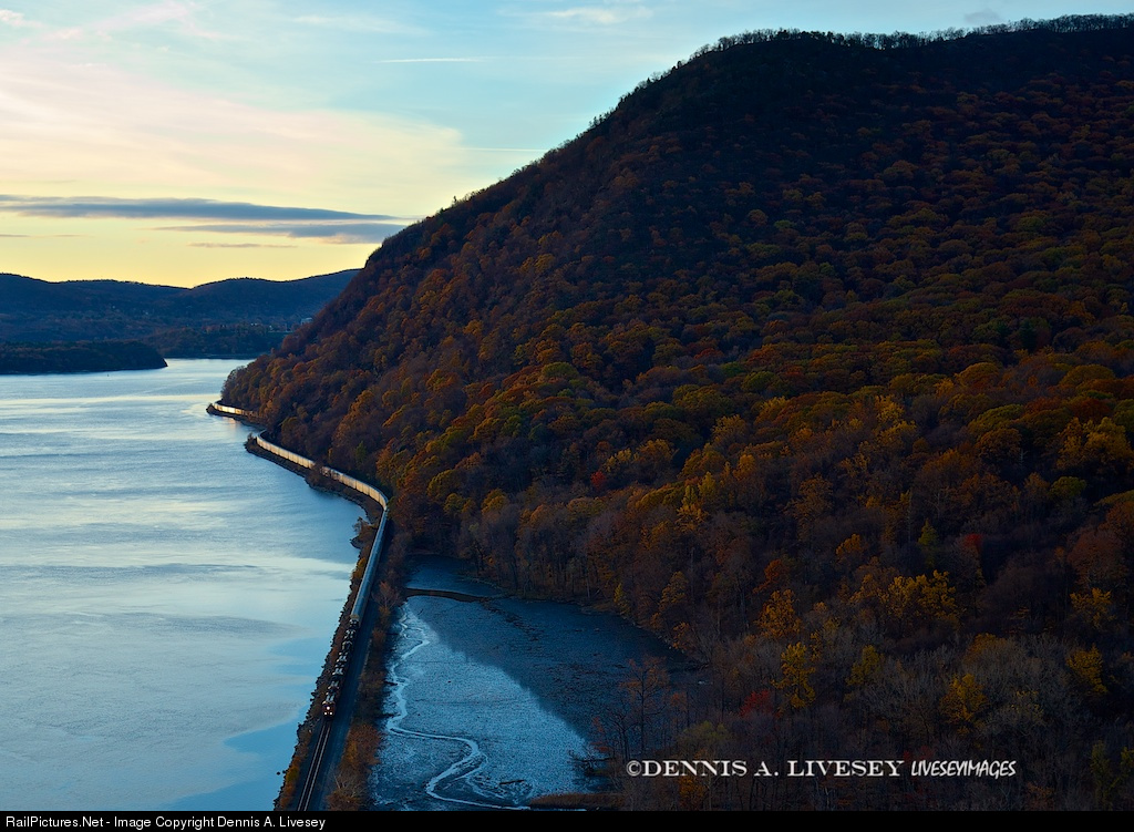 I went out West to find me some pretty S curves and mountains…Actually I just went north of New York City up the river to Storm King Mountain and got nice autumn colors. Hopefully one of the CSX mavens can fill in the Train Id for this 6:56 AM shot.