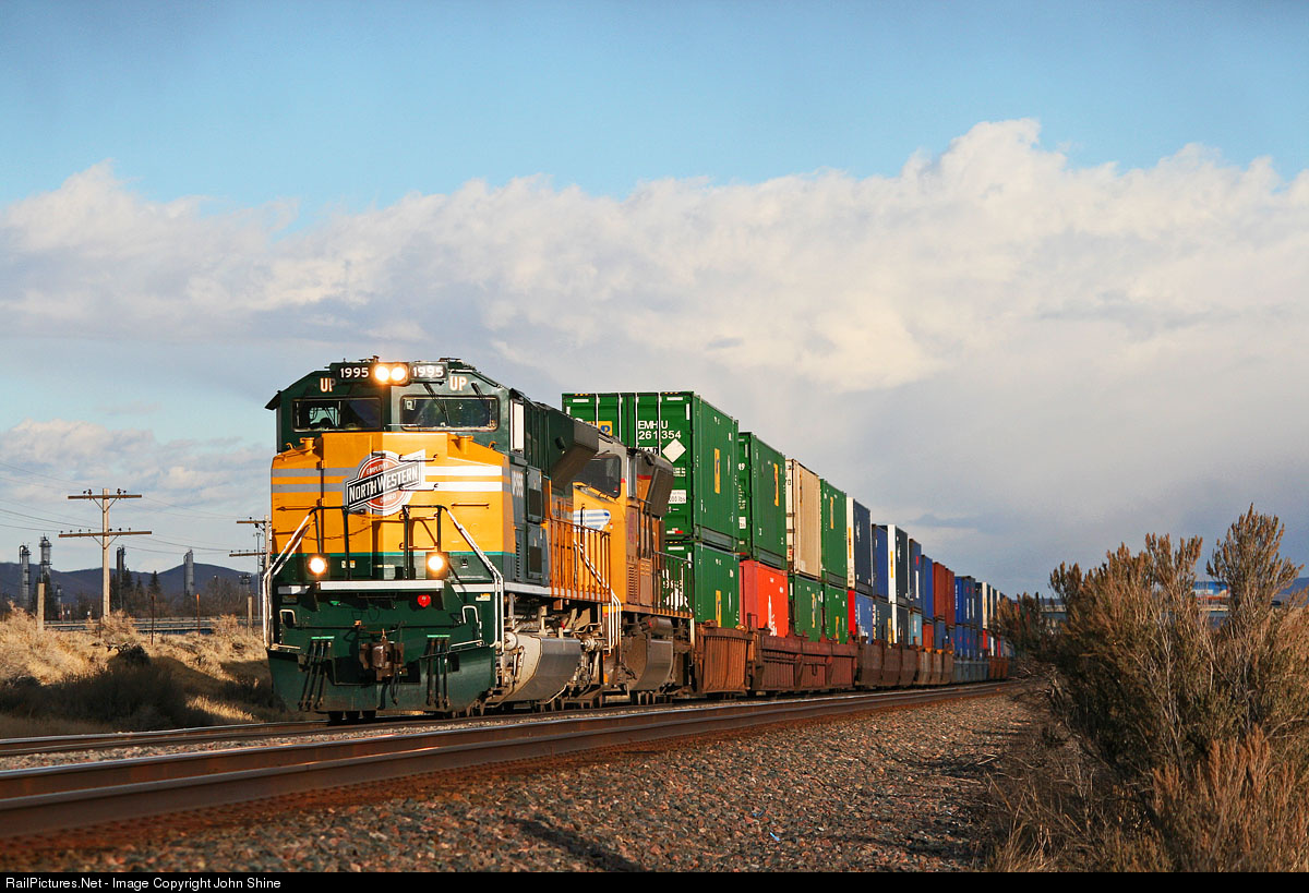 Holding at a signal outside of Rawlins, WY, the UP 1995 waits for traffic to clear ahead.