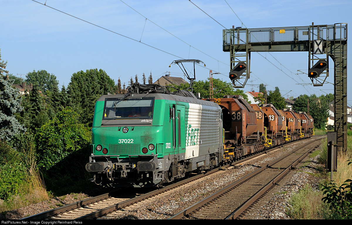 | BB 37022 from SNCF leasing company Akiem heads a rake of four empty torpedo cars from Saarstahl Völklingen roll-mill to Dillingen steel works. The loaden train will move liquid iron (temperature approx. 1400°C / 2550°F) back to Völklingen. |