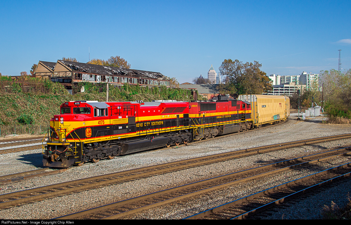| The first unit of Kansas City Southern's final SD70ACe order before "upgraded" emissions standards take effect works with a KCS SD70MAC to bring NS train 237 across the CSX diamond in downtown Atlanta. This train sat for about 3 hours at the Amtrak station due to the Georgia Division's general discontent with running Piedmont Division trains into their yard if a connection does not have to be made within a few hours. |