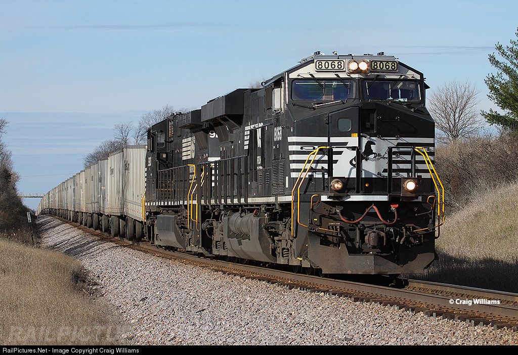 The East Minneapolis, MN, to Chicago, IL, Z-train drags along with only 1 of the 2 NS units running as they climb a grade west of North Lake. The train is about 15 miles west of Butler Yard in Milwaukee. At Chicago this train will run thru to the NS for the trip to Bethlehem, PA.