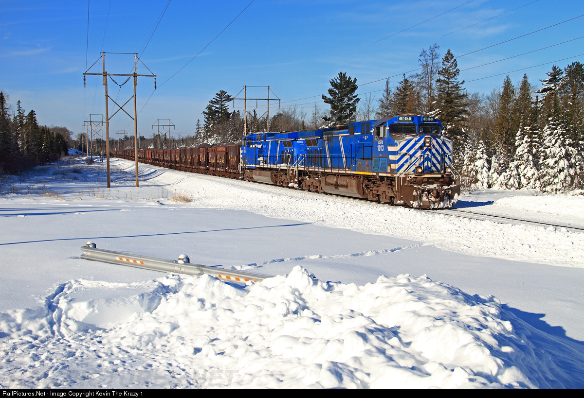 Loaded pellet train from Empire Mine rolls towards Eagle Mills and will then proceed down the hill to the dock at Marquette.