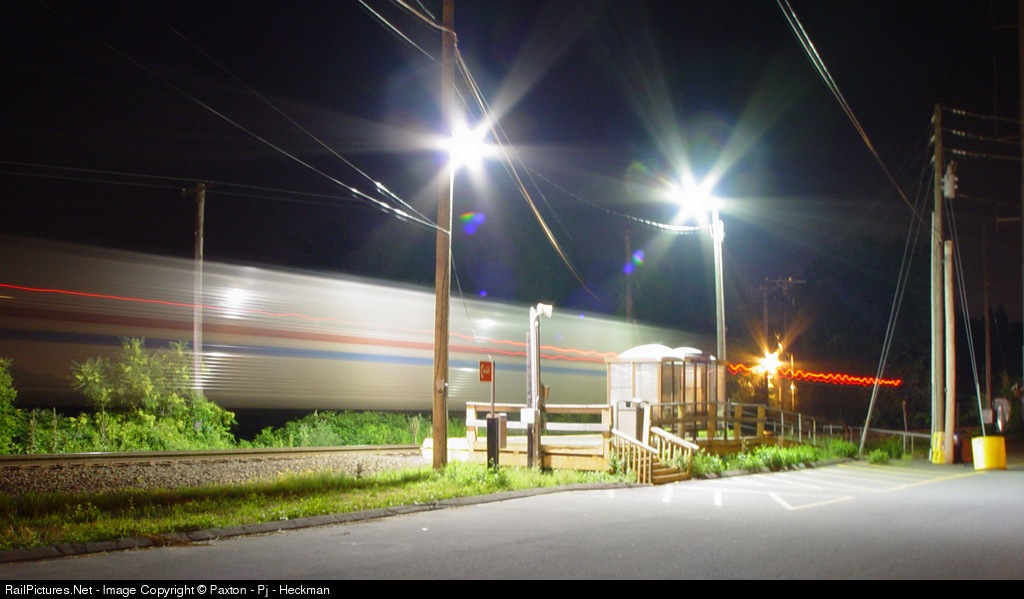 Amtrak Mail 13 southbound thru the Windsor Locks AmShack at 2am on the Amtrak Springfield Line