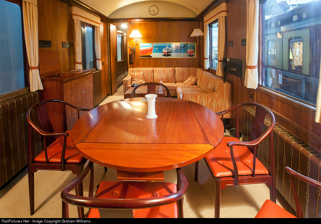 The interior of one of the Royal saloons on display at the Danish Railway Museum at Odense.