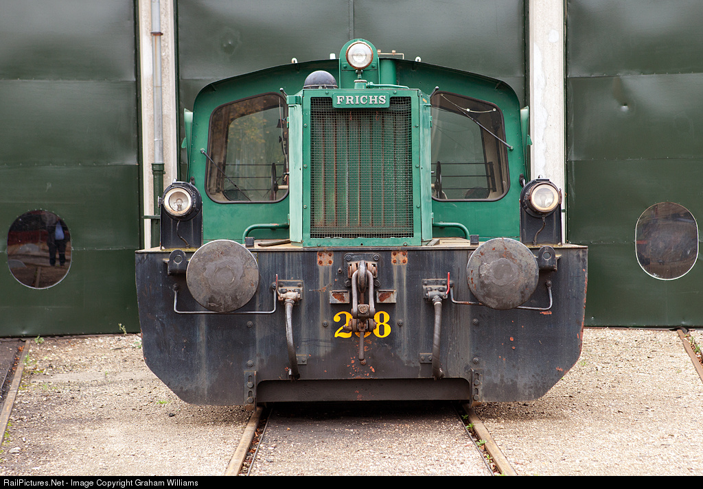 An front view of low-built Diesel Shunter no. 288 at the Danish Railway Museum at Odense. The loco was built by Frichs in Aarhus for light shunting in stations. The loco type was originally developed in Germany. The power unit is a Leyland 680 6-cylinder diesel engine with Voith hydraulic transmission and traction to the wheels via a chain drive. The loco was rebuilt after an accident at East Gate in July 2001. 2001. It was repaired and passed to the museum.
