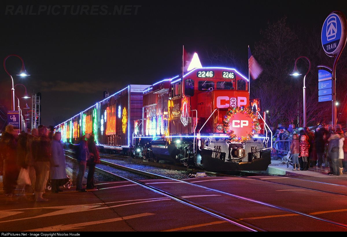 The CP Holiday Train Canadian version makes its first stop at Montreal West, Qc. Lots of people was here. For 2014, the CP Holiday Trains, U.S. version and Canadian version, will have GP20C-ECO leaders.