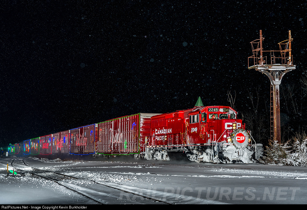 Canadian Pacific Railway launched their 2014 United States portion of the Holiday Train on November 26, departing Montreal, Quebec for Scranton, Pennsylvania. With a Nor'easter snow storm impacting portions of New York with snowfall, the train looked right at home for the holiday season. CP GP20C-ECO 2249 is kicking up snow on the southbound trek through Whitehall, New York and past one of the 'famous' Delaware & Hudson signal masts on the CP Canadian Mainline Subdivision at 03:42 am on November 27.