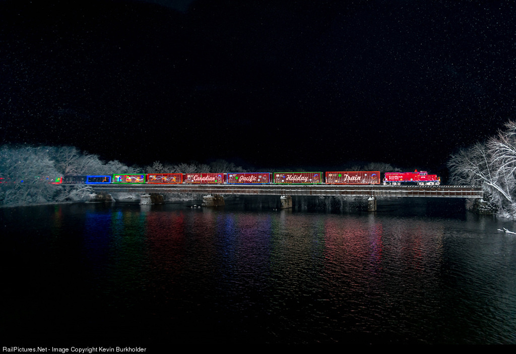Canadian Pacific Railway launched their 2014 United States portion of the Holiday Train on November 26, departing Montreal, Quebec for Scranton, Pennsylvania. With a Nor'easter snow storm impacting portions of New York with snowfall, the train looked right at home for the holiday season. CP GP20C-ECO 2249 is seen leading the train off of Rogers Island and across the Hudson River at Fort Edward at 04:26 am on November 27.