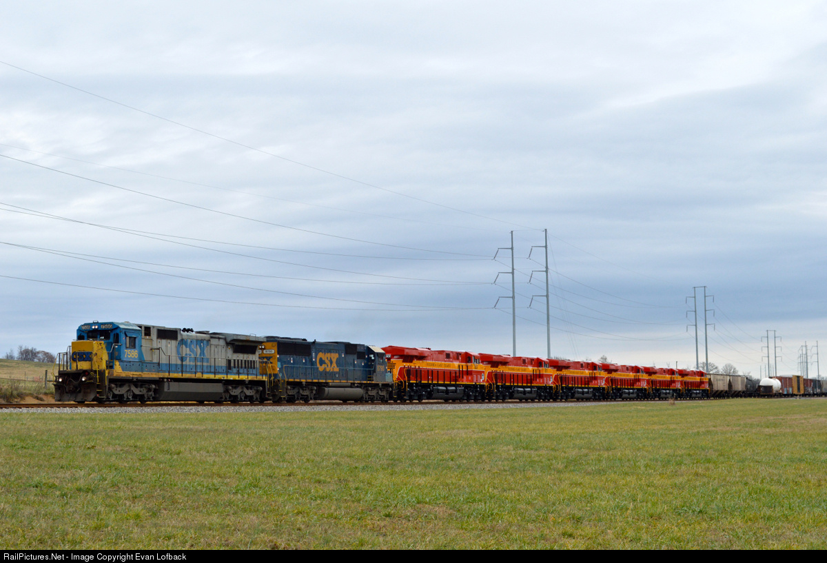 Seven of FEC's newest ES44C4 units are dead-in-tow on train Q541 from Cincinnati to Waycross. The units are fresh out of General Electric's plant in Erie, PA. After they reach Waycross, the units will move to CSX and FEC's Jacksonville interchange via train Q457.