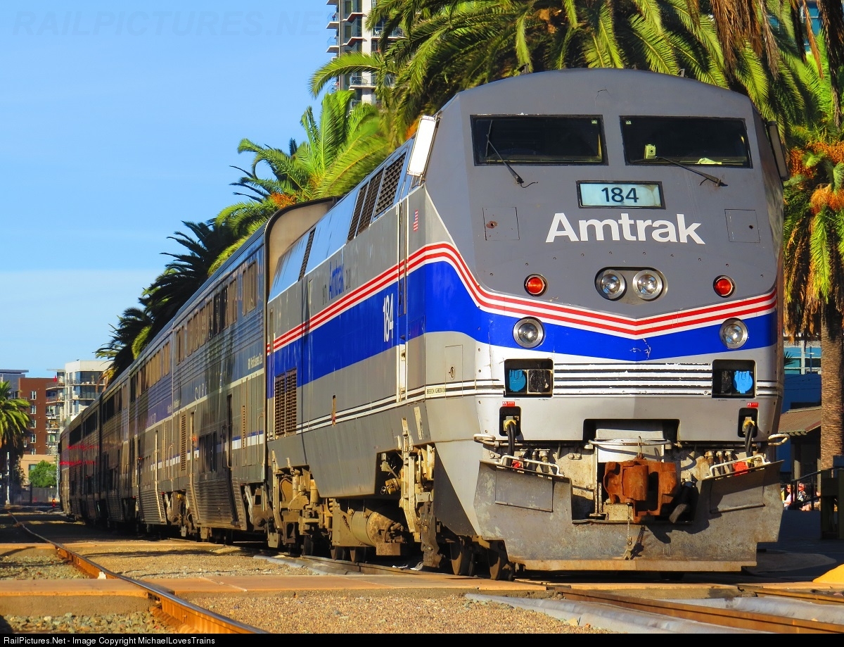 RailPictures.Net Photo: AMTK 184 Amtrak GE P42DC at San Diego, California by MichaelLovesTrains