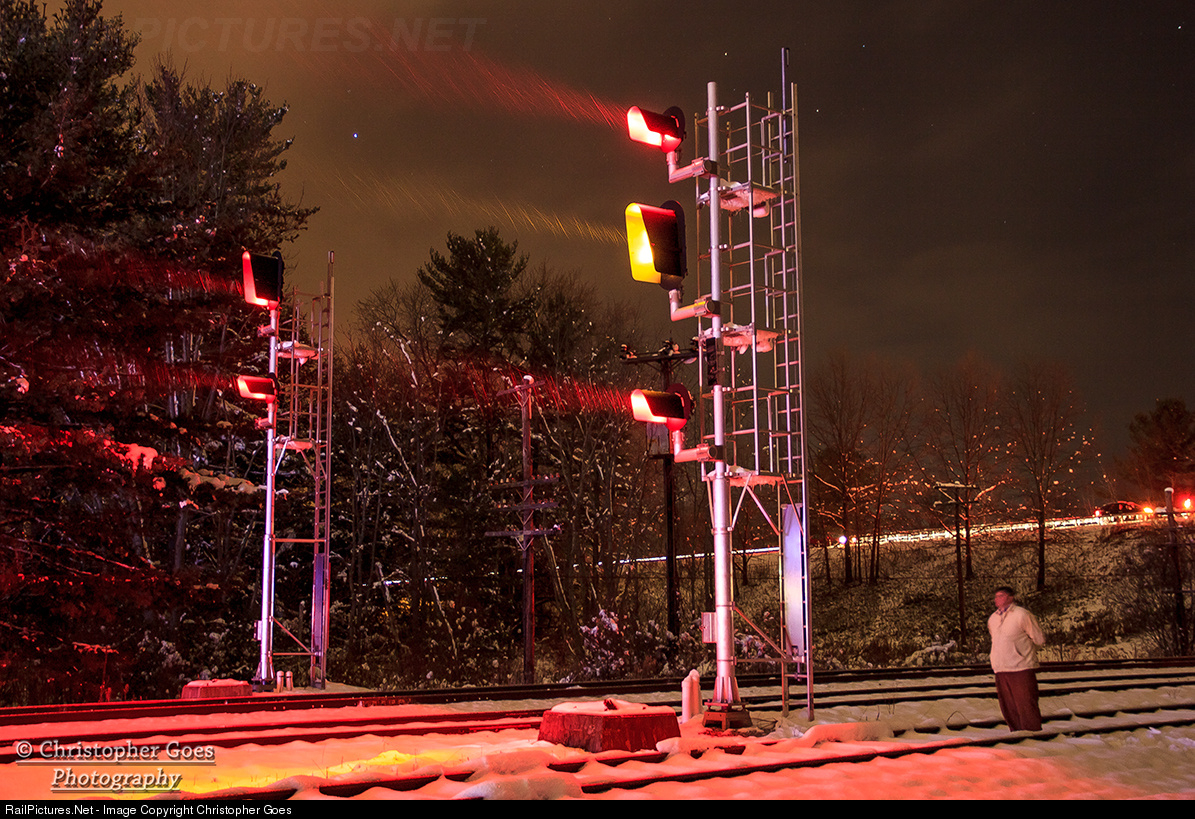 As the snow fell, the signals shined bright for the Canadian Pacific Holiday Train that was sitting at the Saratoga Amtrak Station for it's last show of the night.