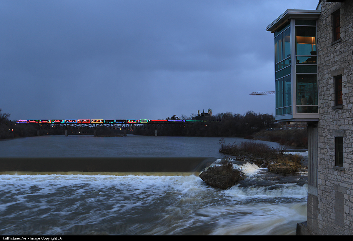 CP 01H-26 briefly stops on the bridge over the Grand River, before continuing on west.