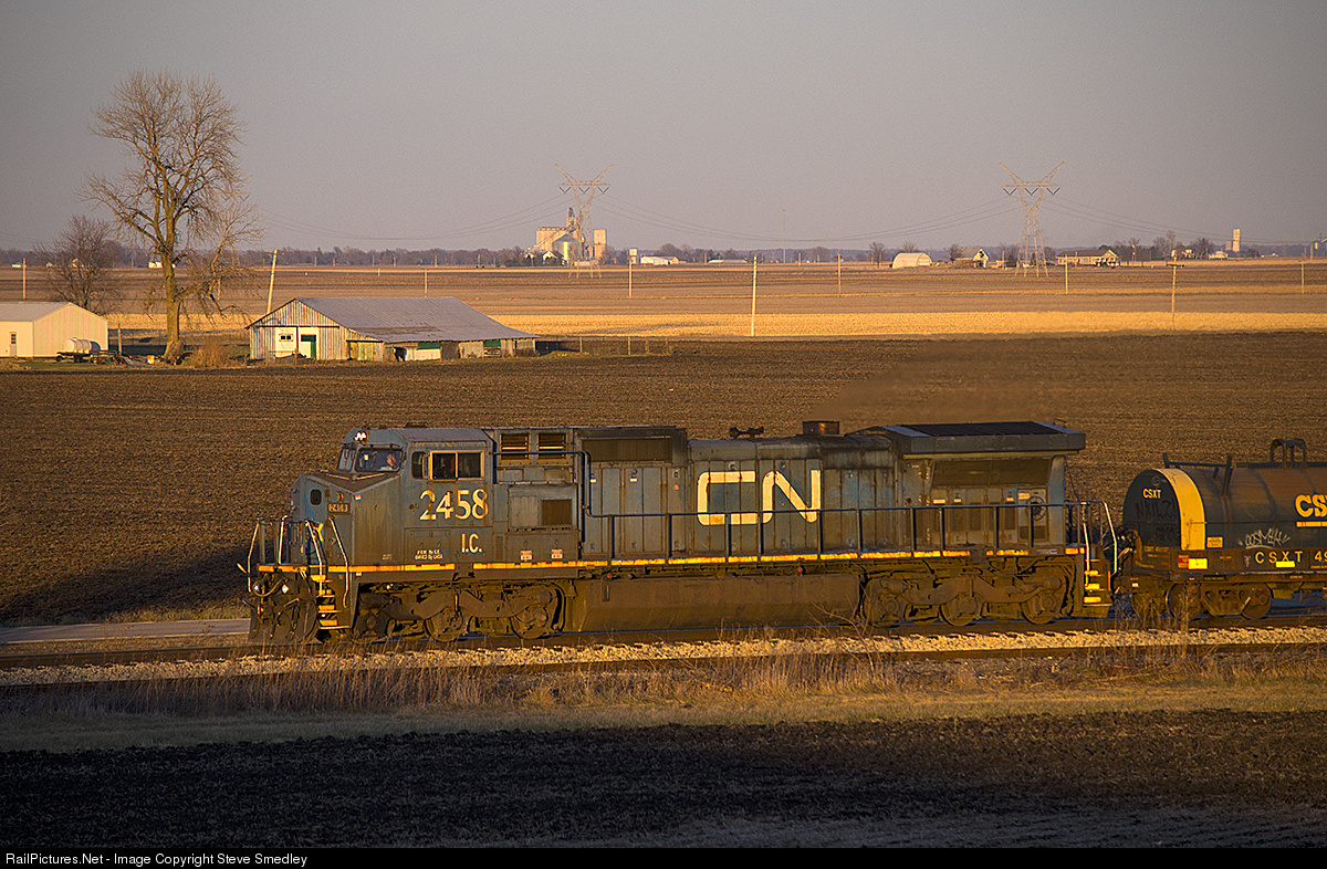 | Engineer Rance Grieder brings the Peoria Local into yard limits at ''MI'' as the sun is close to setting on the first day of December. The 2458 might not look good, but she is still pulling freight.