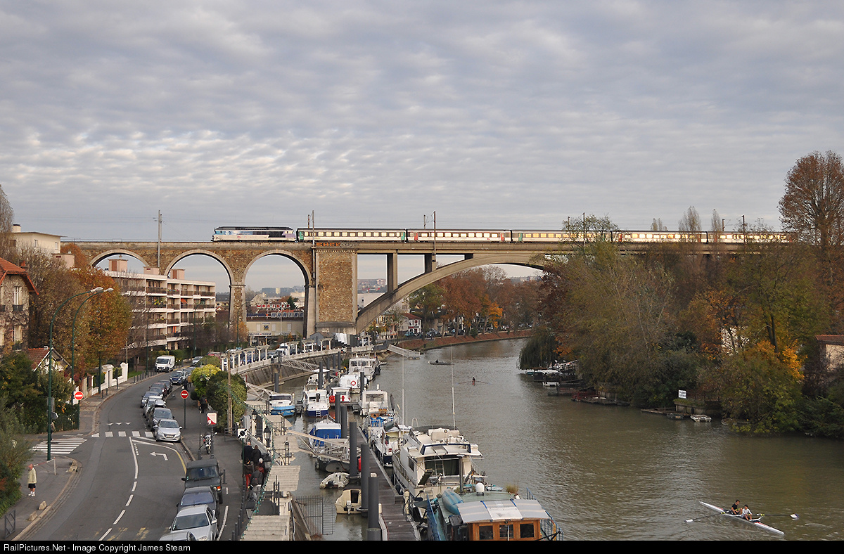 | CC72180 crosses the river Seine at Nogent le Perreux with the 14:12 Troyes- Paris Est. The last of SNCF's 'Nez Cassés' diesels are finishing their days on Line 4 between Paris and Belfort. |